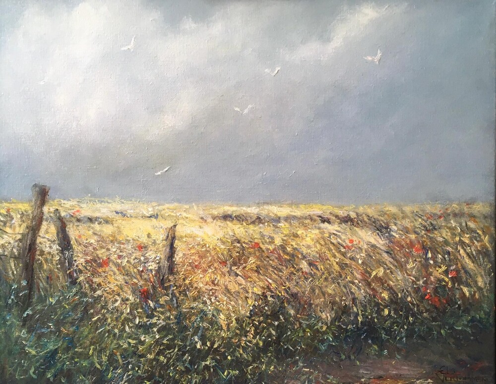 Els Vertommen; Na mijn academietijd heeft vooral het landschap mijn aandacht gekregen. Zowel het golvende Limburgse land met zijn oude meidoornhagen knotwilgen en holle wegen, als ook het Hollandse land, de vlakte met mooie wolkenpartijen, zijn voor mij een inspiratiebron.Mijn werken zijn: Poëtisch realistisch, Romantisch, Klassiek, Impressionistisch en worden geschilderd met begeleiding van klassieke muziek.